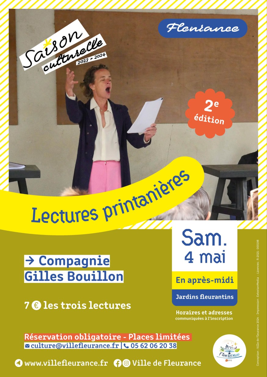 Sur inscription uniquement (places limitées à 50 personnes maximum) au 05 62 06 20 38 ou par courriel : culture@villefleurance.fr