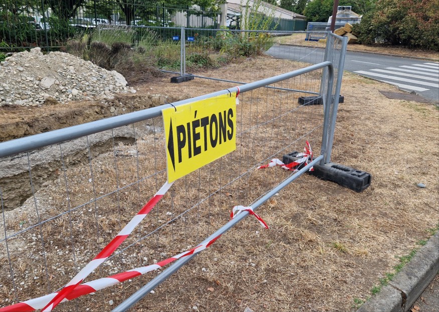 Le cheminement piéton est neutralisé sur le trottoir situé à l’angle de la rue du JEU DE PAUME et du cours WASHINGTON, au droit du STADIUM MUNICIPAL, pour les installations et le stockage du chantier
