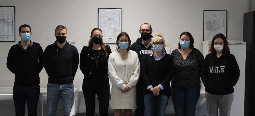 De gauche à droite : Sébastien BONET, Raphaël FREYTET, Elodie ROMAIN, Céline BERHAULT, Jean-Philippe NICKIEL, Dominique SALEY, Karine CAHU, Valérie PEYRILLES.