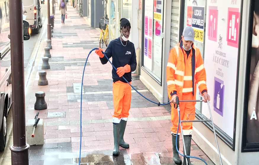 Nettoyage du sol des rues Gustave Böhm, Grande Horloge, des Cornières, Place Maréchal Foch, Rue Noubel, Boulevard Scaliger et Sylvain Dumon, le parvis du cinéma et de la rue Remparts du Pin. @Crédit/Foto-Ville Agen