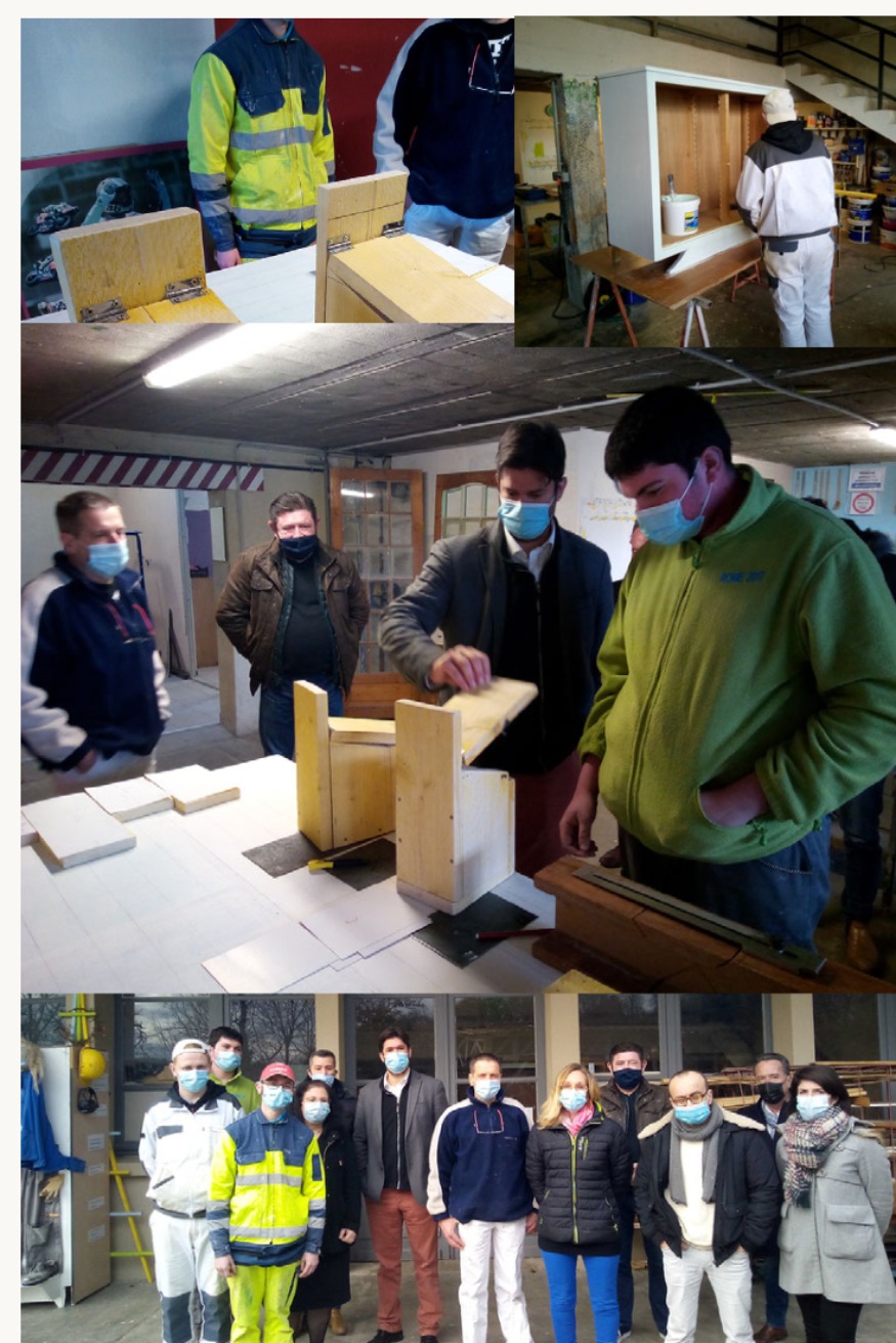 Mme Séverine Baillet, Directrice de l’Institut les a reçu et a conduit la visite vers les ateliers de confection. Ce fût l’occasion de voir l’avancement des travaux de fabrication des nichoirs à oiseaux