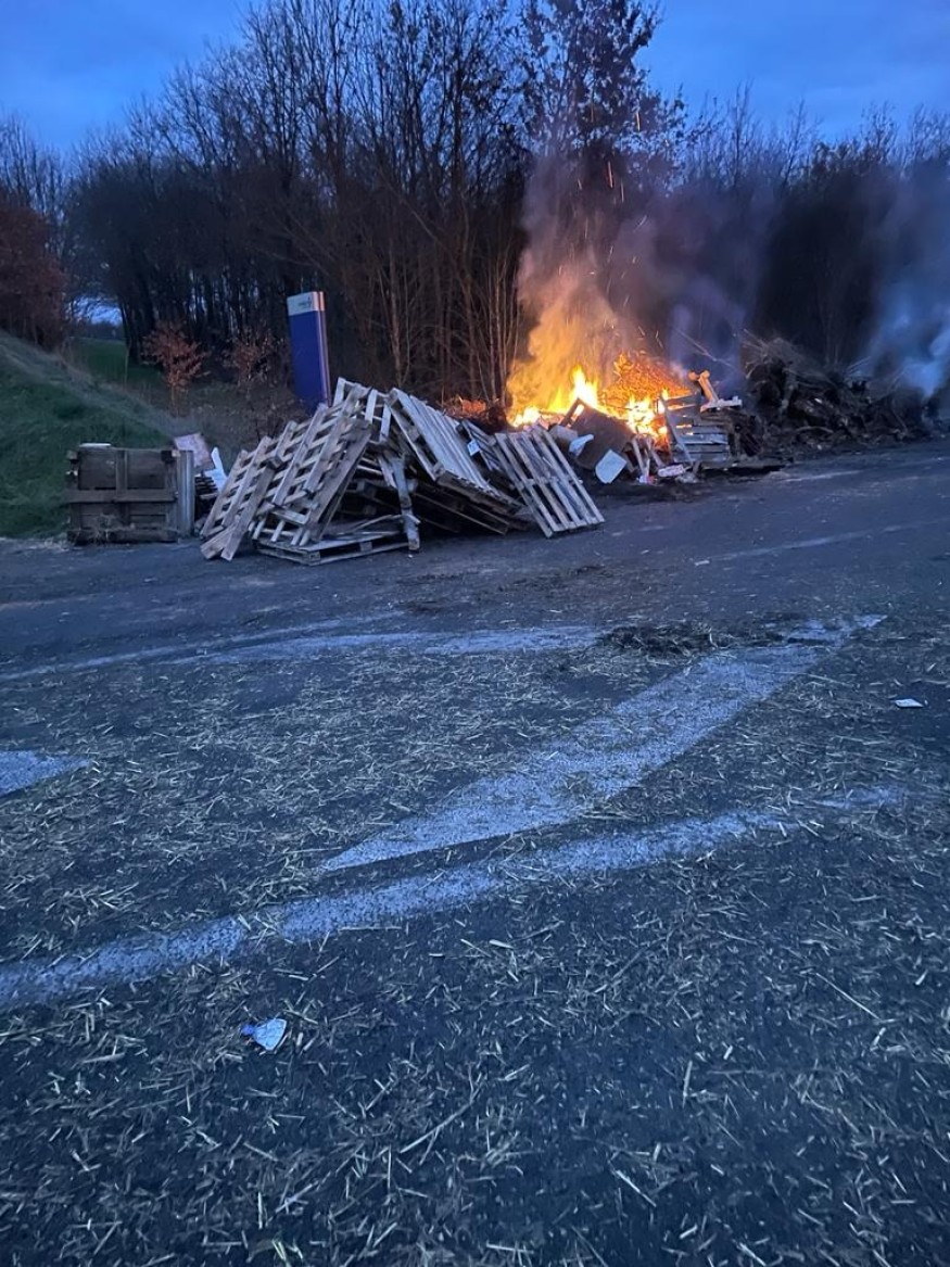 Après l'évacuation du blocage par les agriculteurs samedi soir, les services du Département ont procédé au nettoyage de la chaussée ce dimanche matin