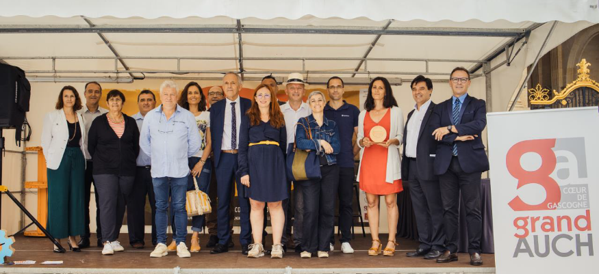 Fort du succès de sa première édition, le concours BIOrigine Gers organisé par l’agence Gers Développement poursuit l’aventure cette année ! Le coup d’envoi a été donné le samedi 3 juillet sur le parvis de la cathédrale d’Auch à l’occasion de la remise des prix de la 1ère édition du concours. Ce même jour, Gers Développement organisait également la remise des prix de la 8ème et 9ème édition du Concours National de la Création Agroalimentaire BIO parrainé par Ecocert. Pour l’accompagner dans la préparation de ce bel évènement et faire rayonner le Gers, l’agence s’est entourée des équipes motivées de la Ville d’Auch et de la Communauté de Communes du Grand Auch. Si la pluie s’est invitée à l’évènement, elle n'en a pas pour autant empêché la réussite. À cette occasion, les deux lauréats de BIOrigine Gers, Baland & Co et Terra Alter ont eu le privilège de proposer sur leur stand une dégustation de leurs produits sur le marché, d’être ovationnés par le public et félicités par d’éminentes personnalités comme Christian Laprébende le maire d’Auch et par les partenaires des deux concours. Parmi les partenaires du concours BIOrigine Gers, les lauréats ont pu faire la connaissance ou retrouver sur le parvis Eric Micaud (Banque Populaire), Philippe Lafforgue (CCI du Gers), Frederic Castex (Vivadour), Yann Paide (Cabinet Sygnatures), Murielle Baque (Cabinet Gimbert), Guillaume Pujos (Cerfrance), Marjorie Niel (Studio NP), Marie Claverol (Crédit Agricole), Yves Raveaux (Lycée Beaulieu Lavacant), Pascal Mercier (Grand Auch Coeur de Gascogne), Cathy Daste Leplus (Conseil Départemental du Gers) et David Taupiac (Gers Développement).