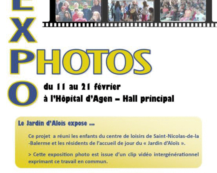 Du 11 au 21 février 2020, le Centre Hospitalier Agen-Nérac est heureux d’accueillir dans ses murs et de pouvoir présenter à ses usagers, une exposition photos réalisée par l’accueil de jour Le Jardin d’Alois (situé à St Nicolas de la Balerme).