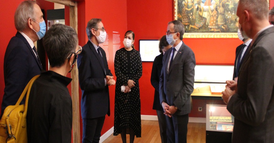 Le maire d’Auch, Christian Laprébende, le président de l’agglomération Grand Auch Coeur de Gascogne, Pascal Mercier, le sénateur Franck Montaugé et le préfet du Gers, Xavier Brunetière ont accueilli, lundi 1er février au musée, l’ambassadeur du Mexique en France, son Excellence Juan Manuel Gomez-Robledo. Alors que le Mexique s’apprête à fêter en 2021 plusieurs anniversaires importants, les 700 ans de la fondation de la ville précolombienne de Tenochtitlan, devenue Mexico en 1522, les 500 ans de la conquête espagnole, et le bicentenaire de son indépendance, l’ambassadeur a découvert sous la conduite du conservateur Fabien Ferrer-Joly, la richesse de la deuxième collection de France d’art précolombien. Chef-d’oeuvre du musée d’Auch, la Messe de Saint-Grégoire, tableau en plumes réalisé en 1539 à Mexico a retenu toute l’attention de l’ambassadeur. Cette oeuvre exceptionnelle, plus ancien tableau chrétien d’Amérique, est dédiée au pape Paul III, en remerciement de son intervention contre l’esclavage des indiens. Entre la date de sa réalisation, en 1539, et l’année 1986 où il est réapparu dans une vente aux enchères en France, nul ne sait quelle fut la destinée de ce tableau qui mêle symboles chrétiens et aztèques . @Foto du musée des Amériques