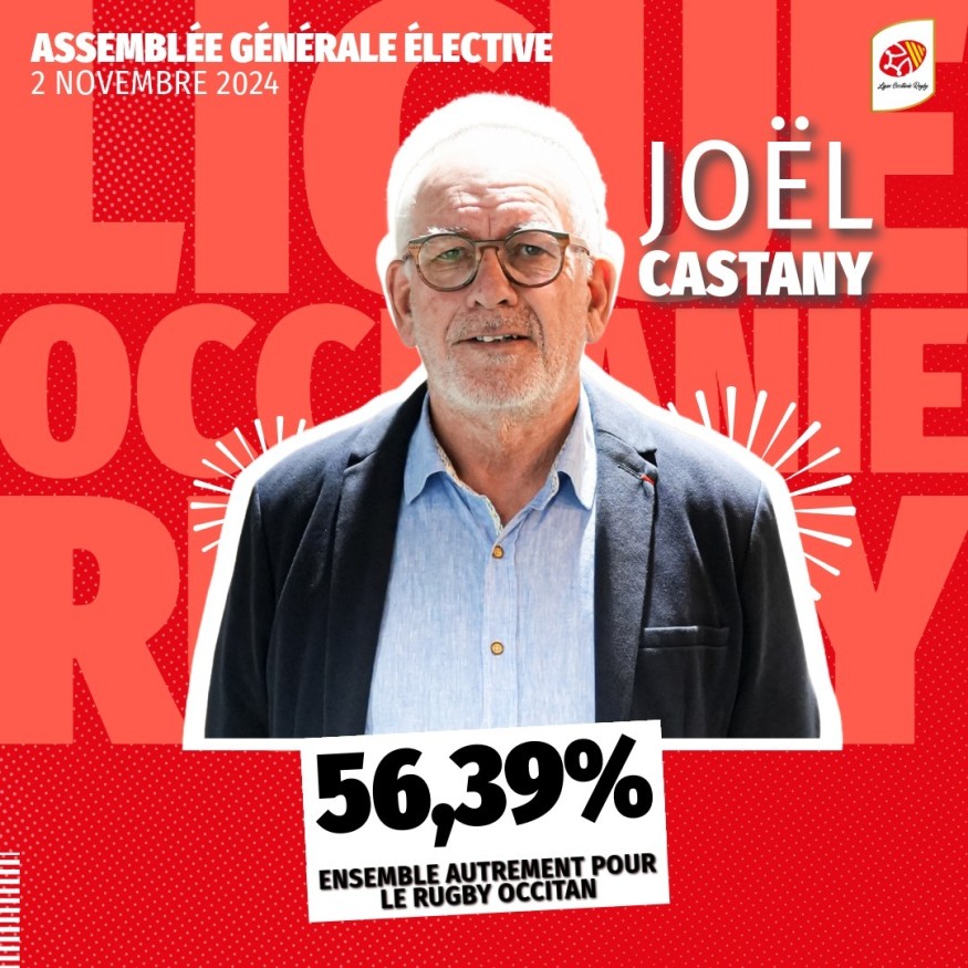 Joël Castany a été choisi comme nouveau président de la Ligue Occitanie de rugby ce samedi 2 novembre. Il a été élu pour un mandat de quatre ans, jusqu'en 2028, prenant la place d'Alain Doucet. Sa liste, nommée "ensemble autrement pour le rugby occitan", a obtenu plus de 56 % des votes. La liste "rugby clubs occitans", dirigée par Alain Azpiroz, a quant à elle recueilli un peu plus de 43 % des voix.