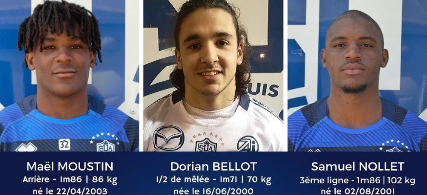 En effet, Maël MOUSTIN et Samuel NOLLET, tous deux joueurs du Club ont paraphé un contrat ESPOIR jusqu’en 2023. Par ailleurs, le jeune demi-de-mêlée, Dorian BELLOT, en provenance du Stade Rochelais, rejoindra également les rangs de la formation agenaise pour les 3 prochaines saisons.