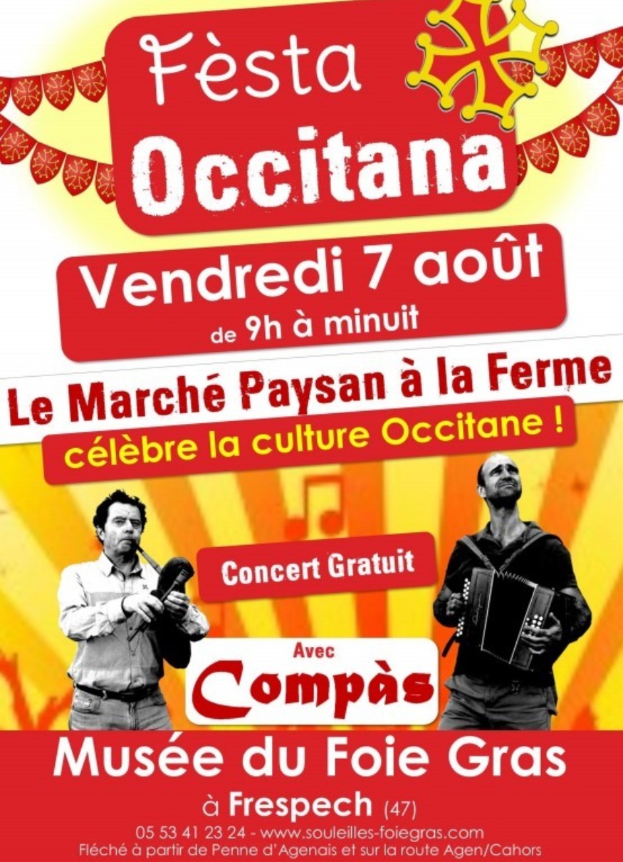 - Le vendredi 7 août, toute la journée à Frespech, Festa Occitana ! : la Ferme de Souleilles vous propose son marché paysan, avec de nombreuses animations (pique-nique à composer à l'aide des produits des producteurs, animations musicales occitanes, stands culturels occitans, démonstrations de métiers anciens et apéro gratuit). A 21h, concert et bal occitan gratuits. Et bien plus encore !
