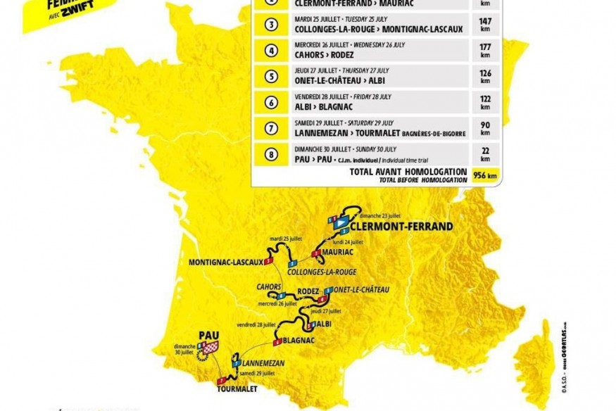 Le parcours du Tour femmes avec Zwift (du 23 au 30 juillet)