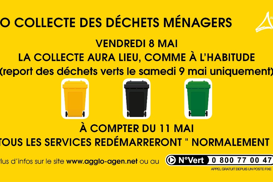 COLLECTE DES DÉCHETS MÉNAGERS COLLECTE LE VENDREDI 8 MAI ET RETOUR A LA NORMALE DE LA COLLECTE