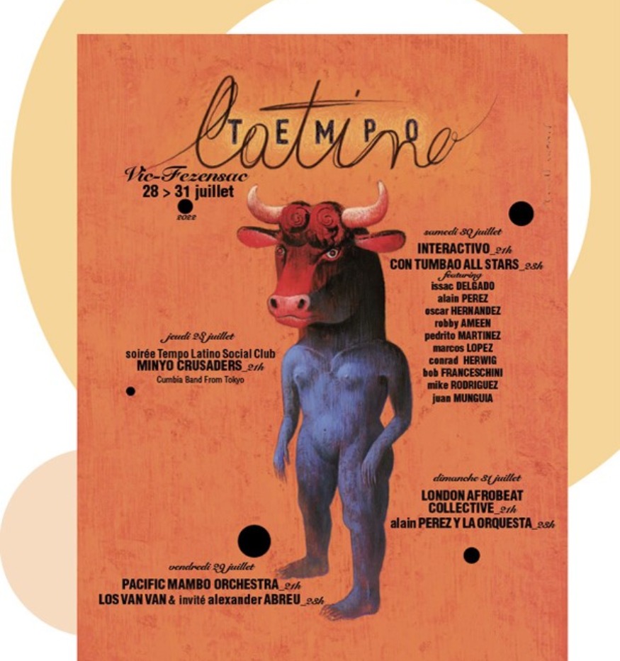 Avec l’Affichiste Ronald Curchod, d’un rouleau de ‘‘vieilles’’ affiches roulées depuis 1992 et découvertes au fond d’une cave, dans l’obscurité. Une affiche sur les 500 ans de la découverte des Amériques en 1492. Cette affiche, magnifique par sa mosaïque de couleurs mais aussi engagée, parlante et dérangeante nous ramène à l’histoire des peuples et de leurs descendants. Cette affiche fait aussi partie d’une démarche et d’une volonté à vouloir créer un événement musical fait de rencontres de découvertes culturelles sur la richesse musicale des Amériques centrale, du sud, du nord d’ouest en est jusqu’à l’Afrique et l’Europe… Ronald Curchod, avait créé cette affiche pour un événement Toulousain et après notre rencontre en 2019, Tempo Latino lui a proposé d’apporter son talent pour l’édition 2020…reportée, transportée en intégralité en 2022 avec Mme Minotaure https://www.tempo-latino.com/