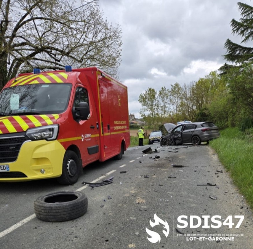 Le 3 avril 2026 à 14h04, un accident s'est produit sur la RD 111, dans la commune de Lauzun. Il s'agissait d'une collision frontale violente entre deux voitures. Dans la première voiture : * Le conducteur, un homme de 71 ans, a été légèrement blessé. Il a été emmené à l'hôpital de Marmande par les pompiers de Marmande, sans assistance médicale spéciale. * La passagère, une femme de 65 ans, a été légèrement blessée. Elle a été transportée à l'hôpital de Marmande par les pompiers de Miramont, aidés par un infirmier sapeur-pompier. Dans la deuxième voiture : * Le conducteur, un homme de 39 ans, a été légèrement blessé. Il a été transporté à l'hôpital de Marmande par les pompiers de Lauzun, sans assistance médicale spéciale. La circulation sur la RD 111 a été bloquée dans les deux directions pendant toute la durée de l'intervention. 14 pompiers sont intervenus sur les lieux . @Photo/ SDIS47