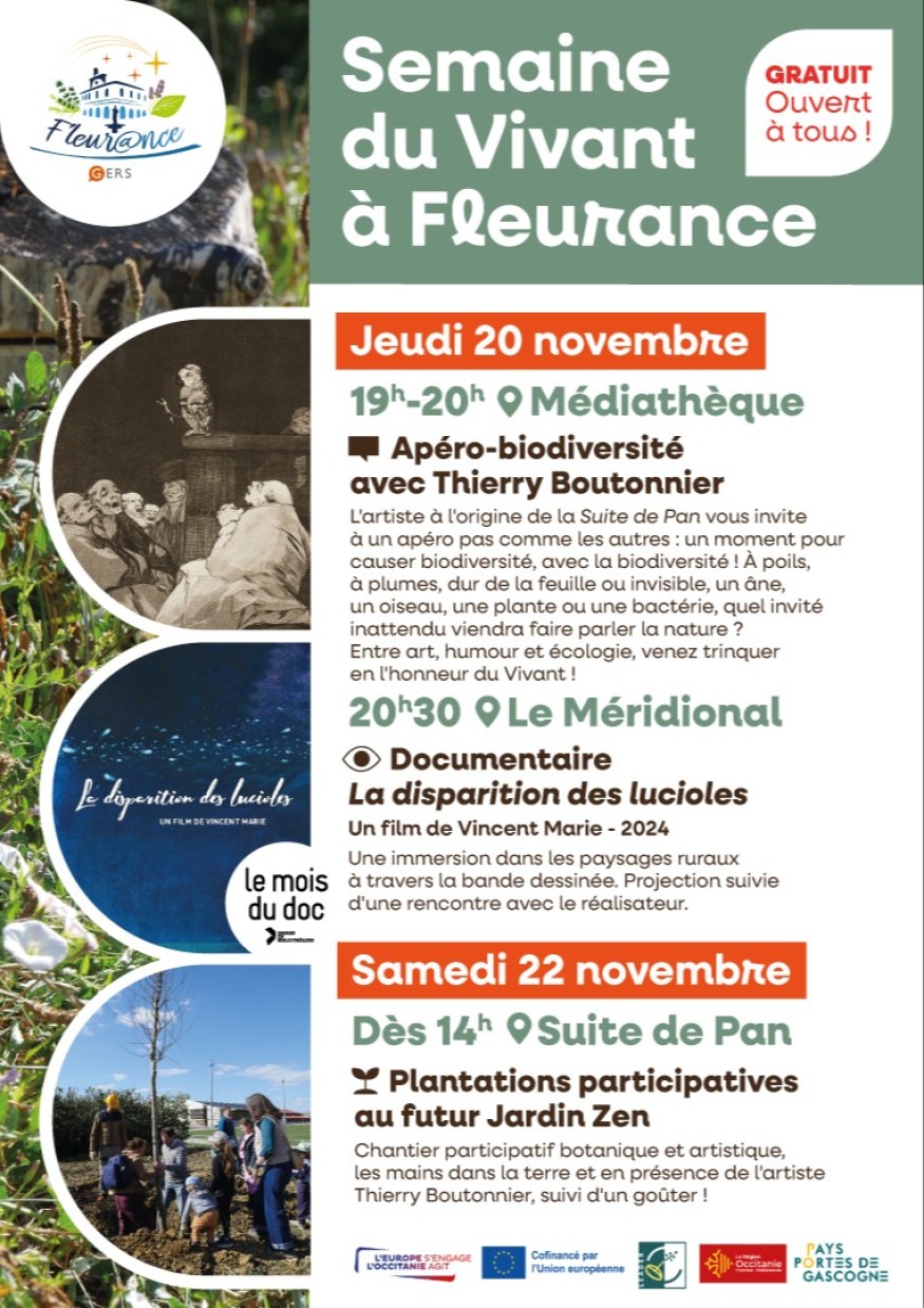 Les 20 et 22 novembre, le monde du Vivant sera une nouvelle fois à l’honneur à Fleurance avec 3 animations centrées sur la biodiversité :