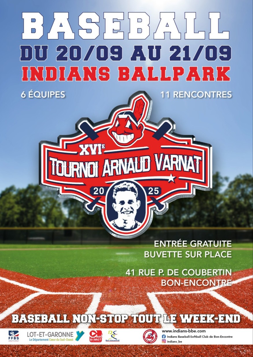 Le club des Indians de Bon-Encontre est heureux de vous annoncer la XVI ème édition du tournoi Baseball ‘Arnaud Varnat’ en hommage à un joueur disparu en 1999.