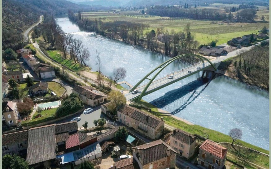 Le Département a donc prévu un projet ambitieux : reconstruire le pont en totalité, d’une hauteur équivalente à l’ouvrage actuel pour ne pas dénaturer le paysage, sans appuis en rivière, et qui permettra le passage des piétons et des vélos en toute sécurité grâce à une voie dédiée.