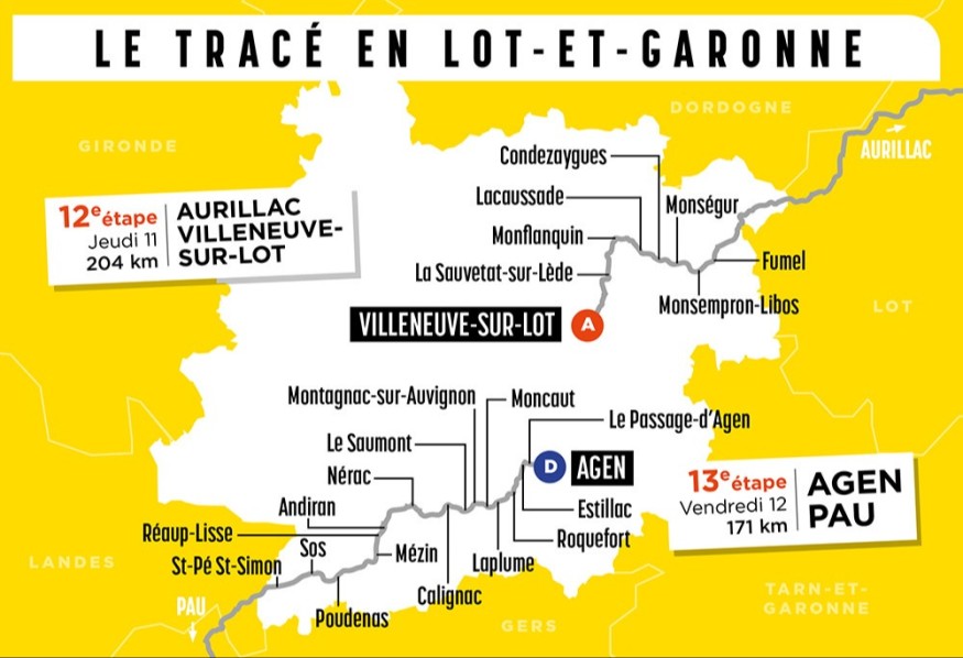 - La 19ème étape s'élancera d'Agen pour se diriger vers Pau sur un parcours de 195 kilomètres.