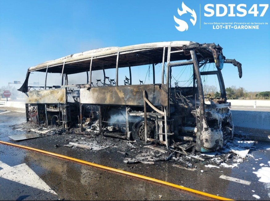 Le 20 mars 2026, à 14h50, les pompiers du Lot-et-Garonne sont intervenus sur l'échangeur n°6.1 de l'autoroute, près du parking de Brax, pour éteindre un incendie de bus. Ce bus diesel transportait 23 personnes, membres de l'équipe sportive MAHR des Crabos de Montpellier. Quand les secours sont arrivés, le bus était entièrement en feu. Les 23 occupants, y compris les deux chauffeurs, six accompagnateurs et quinze jeunes joueurs de rugby, avaient réussi à sortir du bus par eux-mêmes avant l'arrivée des pompiers. Personne n'a été blessé. Un endroit a été désigné pour rassembler toutes les personnes impliquées. Les pompiers ont utilisé une lance branchée à un système d'eau spécial pour éteindre le feu. Pendant l'opération, l'échangeur a été fermé à la circulation pour un court moment, mais cela n'a pas affecté le trafic sur l'autoroute principale. La gendarmerie et les services routiers de l'autoroute étaient également présents. Vingt pompiers et six véhicules de pompiers ont été mobilisés sur place.
