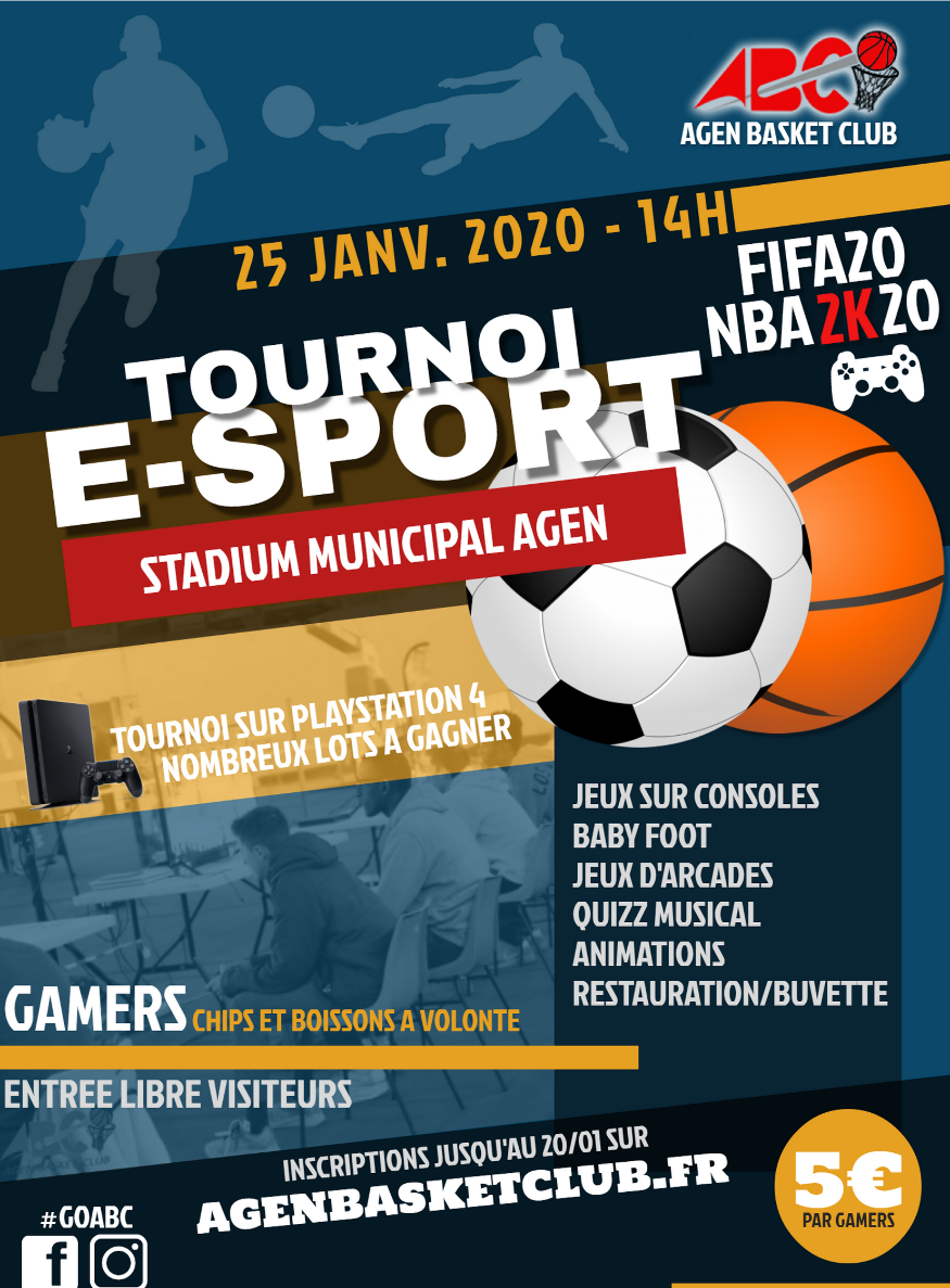 La deuxième édition du tournoi de l'ABC eSport qui se prépare au Stadium d'Agen. Le samedi 25 janvier prochain les jeunes agenais et Lot-et-Garonnais sont attendus pour participer à cette après-midi de E-SPORT !