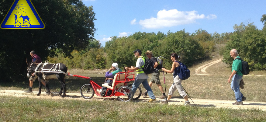 Pourquoi ce défi ? L'association Adodâne est très attachée à faire marcher ses ânes sur les chemins avec des personnes à mobilité réduite ou en situation de handicap. Ceux que l’on oublie si facilement quand on part sur les chemins !
