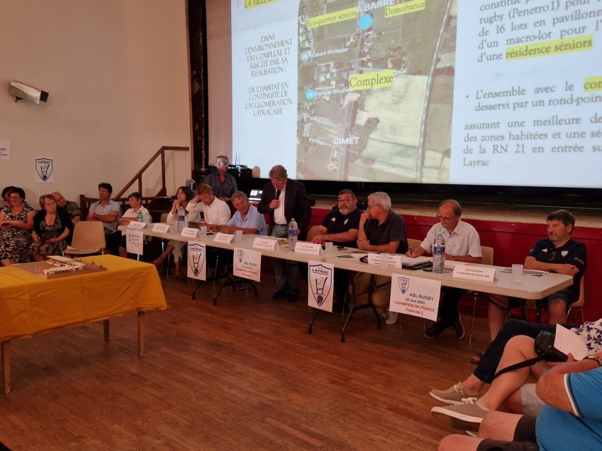 Mercredi soir, réunion publique au foyer des campagnes de LAYRAC, avec une projection explicative et bien détaillée, du futur complexe sportif Layracais . On aura noté la présence, du bouclier de champion de France de fédérale 2 et de certains joueurs du club Layracais . Le chantier débutera à compter du 1er juin 2024 .