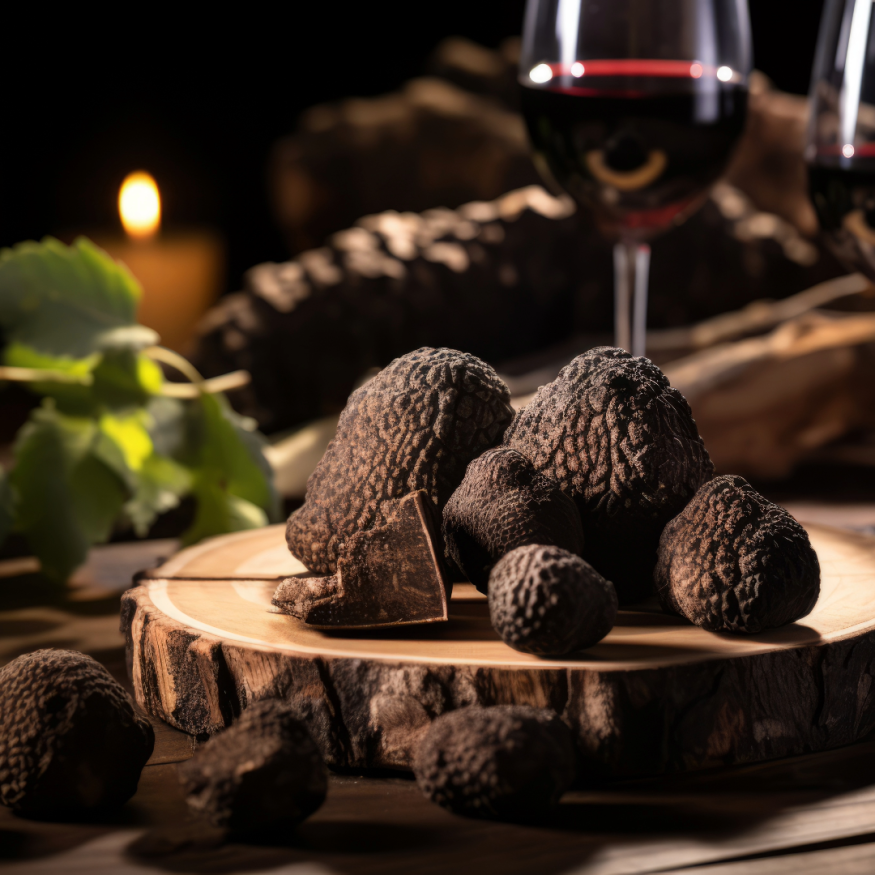Tuber Melanosporum, la Truffe noire du Périgord, de décembre à mars, meilleure période du 15 janvier au 15 février, à consommer de préférence crue ou peu cuite