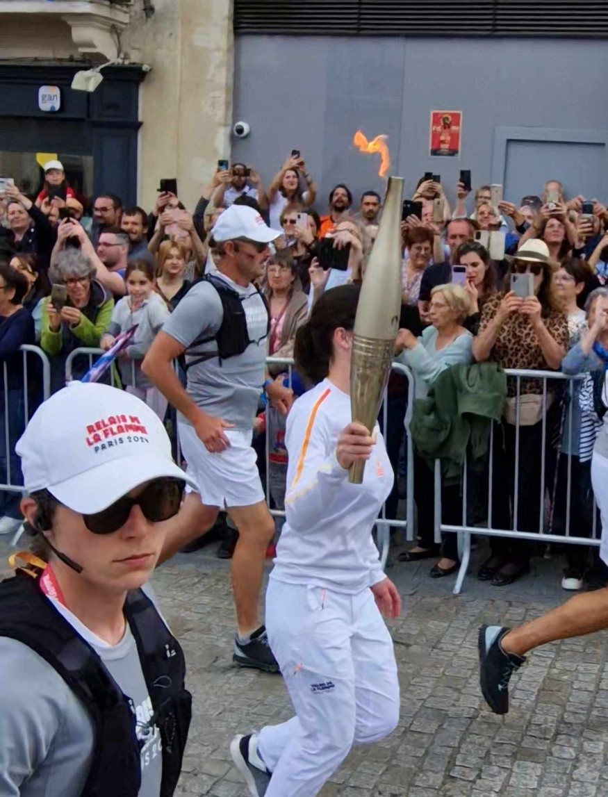 Allumage du chaudron à Ville d'Auch Odette Desprats PIONNIÈRE DU RUGBY FÉMININ .