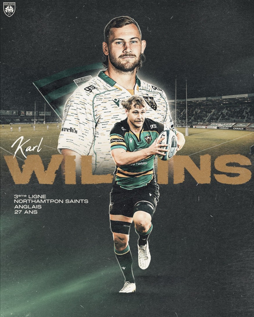 Karl WILKINS est un joueur anglais formé à Northampton (2013/2014), puis l’ASM Clermont Auvergne (2014/2016) pour faire ses premiers pas en Pro à l’ASBH en 2016/2017. 3ème ligne JIFF, il passe 5 saisons dans l’Hérault pour plus de 61 matchs. Souvent capitaine, et passé par les équipes de jeunes d’Angleterre, Karl saisit l’opportunité de retourner dans son club formateur initial en 2021, disputant 15 matchs pour les Saints.